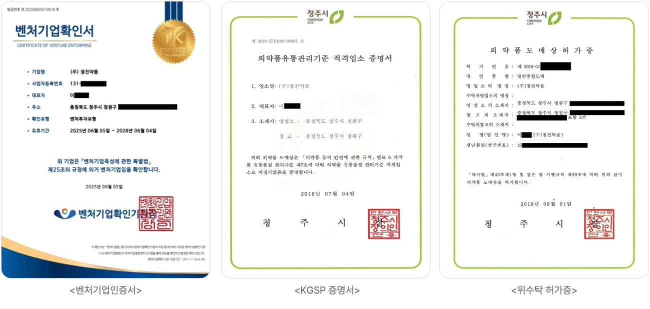 저희 (주)정진약품은 다른 유사한 회사명의 업체와는 관련이 없습니다. 주주가 대표자 100%인 단독회사 입니다.